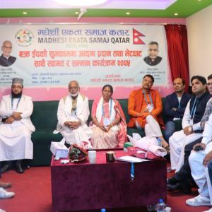 रामएकवाल रामदोहा कतार : कतारमा स्थापित मधेसी एकता समाज कतारले ईस्लाम धर्मावलम्बीहरुको दोस्रो ठूलो पर्व वक्र ईदको अवसरमा भेटघाट तथा शुभकामना अदान प्रदान कार्यक्रम सम्पन्न गरेका छन।गत शुक्रबार गोर्खालीरेस्टुरेन्टको सभाहलामा समाजका अध्यक्ष शिव कुमार महतोको सभापतित्वमा तथा राष्ट्रिय मुक्ति पार्टी नेपालका अध्यक्ष तथा पूर्व उपप्रधानमन्त्री राजेन्द्र महतोको प्रमुख आतिथ्यता रहेको थियो।कार्यक्रममालाई सम्बोधन गर्दै नेता महतोले कार्पेट मुनि फोहोर लुकाएर घर सफा देखाउने प्रवृत्तिले देश विकास नभएको बताएका छन।नेपाल बनाउने योजना बनाए पनि साझा नेपाल बनाउने योजन