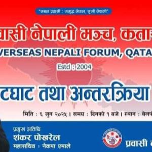 रामएकवाल रामदोहा :- नेपाल कम्युनिस्ट पार्टी (नेकपा ) एमालेका महासचिव शंकर पोखरेल कतार आउने भएका छन।प्रवासी नेपाली एकता मञ्च कतारले आयोजना गर्न लागेको भेटघाट तथा अन्तरक्रिया कार्यक्रममा सहभागी हुन महासचिव पोखरेल कतार आउन लागेका हुन।अगामी जुन ६ तारिख सनैयाको प्लाजा मल स्थित वेलफेयर सोसाइटी रेस्टुरेन्टको सभाहलमा दिउँसो १ बजे देखी कार्यक्रम हुने मञ्च कतारका अध्यक्ष चुडामणि कार्कीले जानकारी दिए।