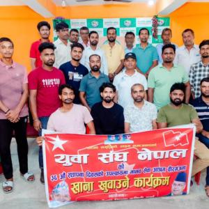 वीरगंज - नेपाल कम्युनिष्ट पार्टी (एकीकृत समाजवादी) निकट युवा संघ नेपाल पर्सा जिल्ला कमिटीले बिहिवार ३६ औं स्थापना दिवसको अवसरमा मानव सेवा आश्रम वीरगंजमा खाना खुवाएको छ । वीरगंज महानगरपालिका वडा नं. २५ स्थित मानव सेवा आश्रममा आश्रित करिब ५० जना वृद्ध आमा दिदी बहिनीहरुलाई खाना खुवाईएको छ ।युवा संघ नेपाल पर्साका अध्यक्ष राज श्रीवास्तवको अध्यक्षतामा सम्पन्न सो कार्यक्रमका प्रमुख अतिथि युवा संघ नेपालका केन्द्रिय सचिवालय सदस्य एवं पर्सा जिल्ला ईन्चार्ज अनिल पटेलले पानसमा दीप प्रज्वलन गरी उदघाटन गरेका थिए । नेकपा एसका महाधिवेशन प्रतिनिधि समेत रहेका प