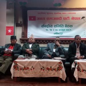 काठमाडौं, १७ फागुन ।जनता समाजवादी पार्टी (जसपा) नेपालले केन्द्रीय समितिको बैठक बोलाएको छ।ललितपुर भोलढोकास्थित ज्यापु प्रज्ञा भवनमा यही फागुन १८, १९ र २० गते बिहान ११ बजे बस्ने गरी केन्द्रीय समितिको बैठक आह्वान गरिएको सो पार्टीका प्रचारप्रसार तथा प्रकाशन विभाग प्रमुख पूर्ण बस्नेतले जानकारी दिए। उनले भने बैठकमा गत भदौदेखि पार्टीले सञ्चालन गरेको ‘जनतासँग जसपा नेपाल, आधारभूत सङ्गठन निर्माण अभियान’ को समीक्षा हुने छ।बैठकमा पालिका समितिको जिम्मेवारीमा खटाइएका केन्द्रीय नेताहरूले आआफ्नो कार्यक्षेत्रमा भएका कार्यप्रगति विवरण प्रस्तु