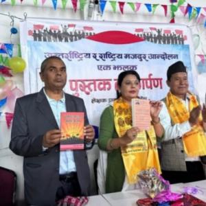 काठमाडौं। जनता समाजवादी पार्टी (जसपा) नेपालका केन्द्रीय सदस्य एवं नेपालको ट्रेड युनियन आन्दोलनका अग्रज प्रचण्डकुमार पौडेलद्वारा लिखित पुस्तक ‘अन्तर्राष्ट्रिय र राष्ट्रिय मजदुर आन्दोलनः एक झलक’ लोकार्पण भएको छ । ललितपुरको बालकुमारीमा एक कार्यक्रमको आयोजना गरी जसपा नेपालका अध्यक्ष उपेन्द्र यादवले उक्त पुस्तक लोकार्पण गरेका हुन् ।अन्तर्राष्ट्रिय र राष्ट्रिय मजदुर आन्दोलनले प्राप्त गरेका उपलब्धी र मजदुरको अवस्था तथा आगामी दिन मजदुरहरुका चूनौतिका विषयमा केन्द्रित भएर उक्त पुस्तक प्रकाशन गरिएको लेखक पौडलले बताएका छन् ।समाजवादी ट्रेड युनियन महासंघको आ