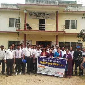 अजय मिश्र, कृष्णनगर, चैत्र २६ - नेपाल विद्युत प्रधिकरणले आज अधिराज्यभर विद्युतीय सुरक्षा दिवस मनाएको छ। सोही क्रममा कपिलवस्तु जिल्लाको नेपाल विद्युत प्राधिकरण वितरण केन्द्र कृष्णनगरले विद्युतीय सुरक्षा तथा सचेतना सम्बन्धमा प्रभातफेरी कार्यक्रम गरेर मनाएको छ। आज विद्युत सुरक्षा सम्बंधि सचेतनामूलक प्लेकार्ड, पोष्टर, हातमा लिएर तथा गाडिमा साउनडको सहायताले सचेतनामूलक सूचना प्रसारण गर्दै नेपाल विद्युत प्राधिकरण कृष्णनगर वितरण केन्द्रको कार्यालय बाट प्रभातफेरी कार्यक्रम सुरूवात गरि कृष्णनगर बजार परिक्रमा गरि पुनः कार्यालयमा आएर कार्यक्रम समापन गरि